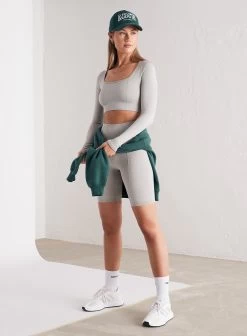 Light Grey Melange Luxe Seamless Cropped Long Sleeve